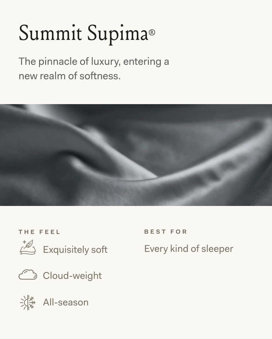 Slow spun for exceptional luster and softness beyond compare. Made of rare, long-staple 100% organic cotton.