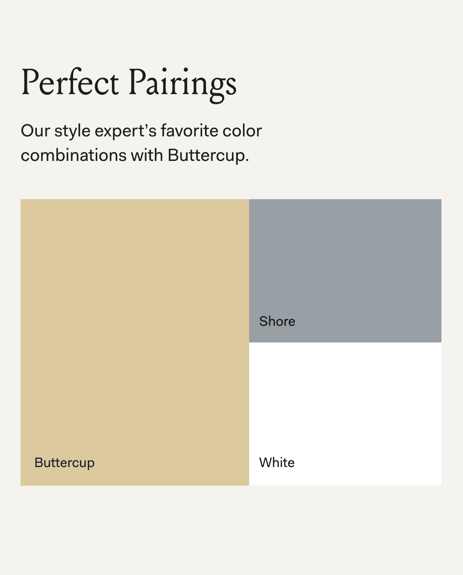 A light & creamy yellow with warm undertones, uplifting your space with the bright-yet-soothing color of sunrise.