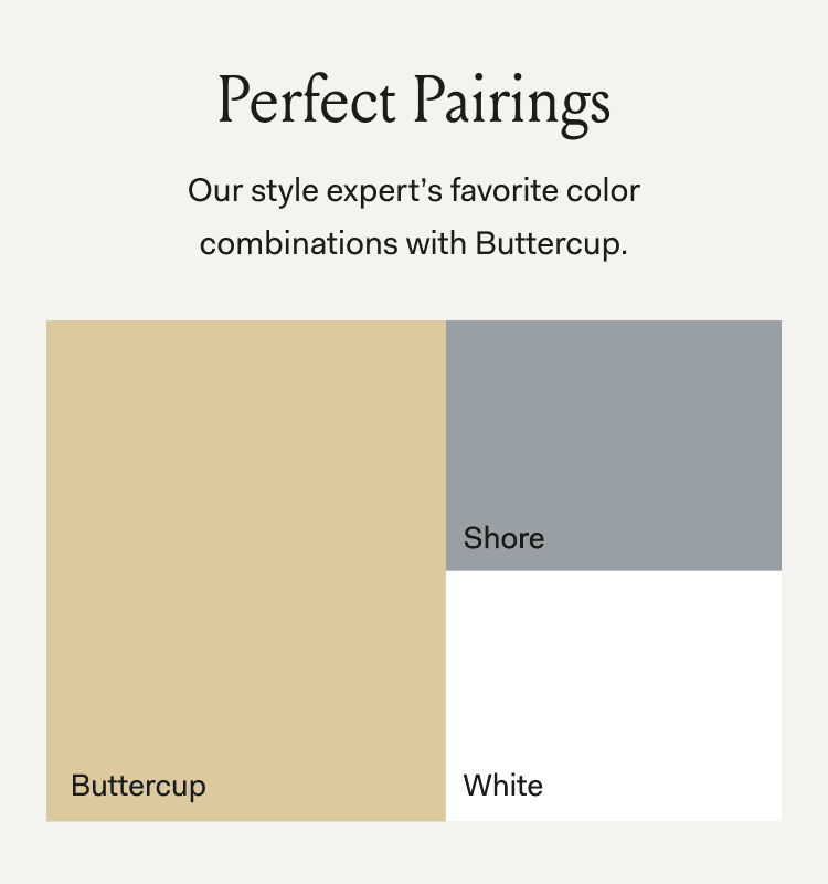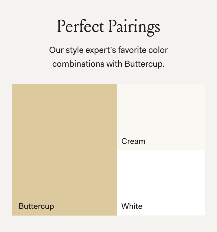A light & creamy yellow with warm undertones, uplifting your space with the bright-yet-soothing color of sunrise.