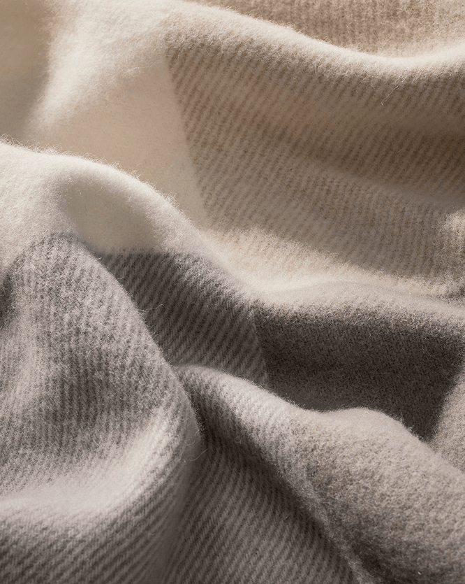 Prized for its certified organic and sustainable sourcing, our rare, singularly soft 100% extra-fine Merino wool offers cozy-yet-breathable, all-season comfort. The woven Trielle motif embodies the meticulous nature with which we select our colors, pairing both warm and cool neutral threads on a light-tone ground in a trio of shades known as our House Neutrals.