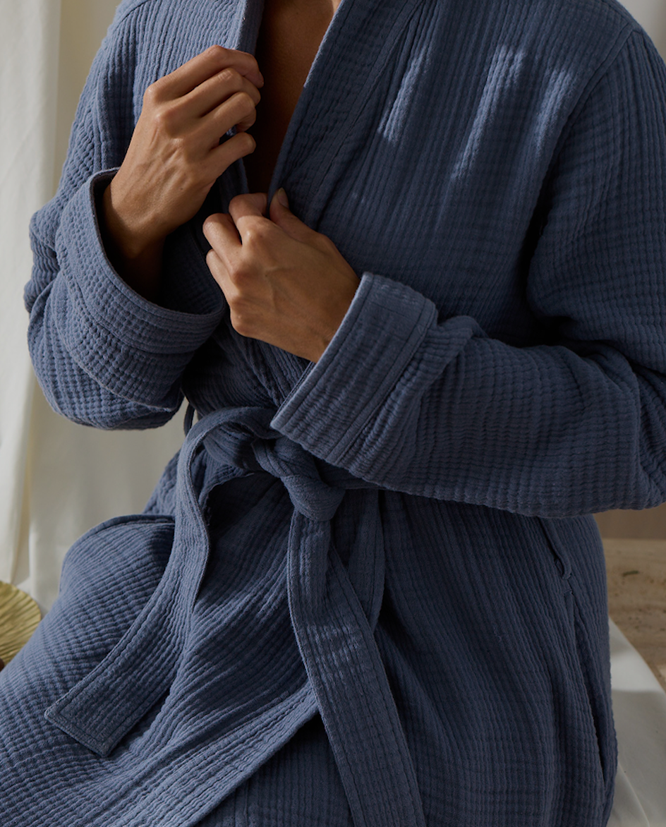 A rare balance of warmth and breathability in 100% organic cotton. Triple sheared for a coziness unlike any other.